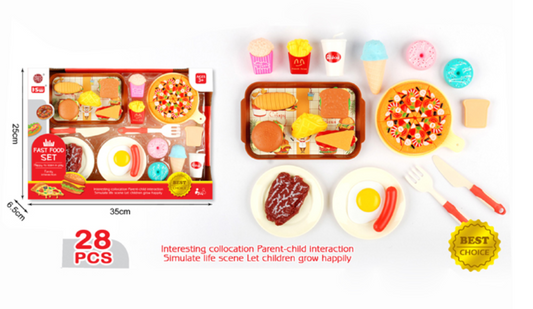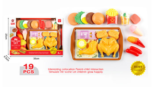 مجموعة صواني لعب الوجبات السريعة مكونة من 19 قطعة