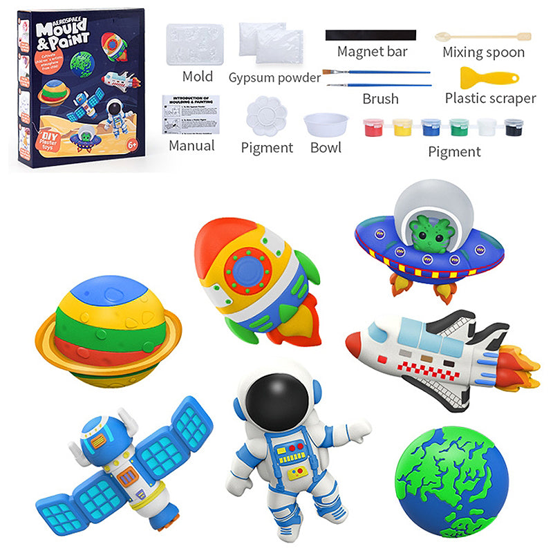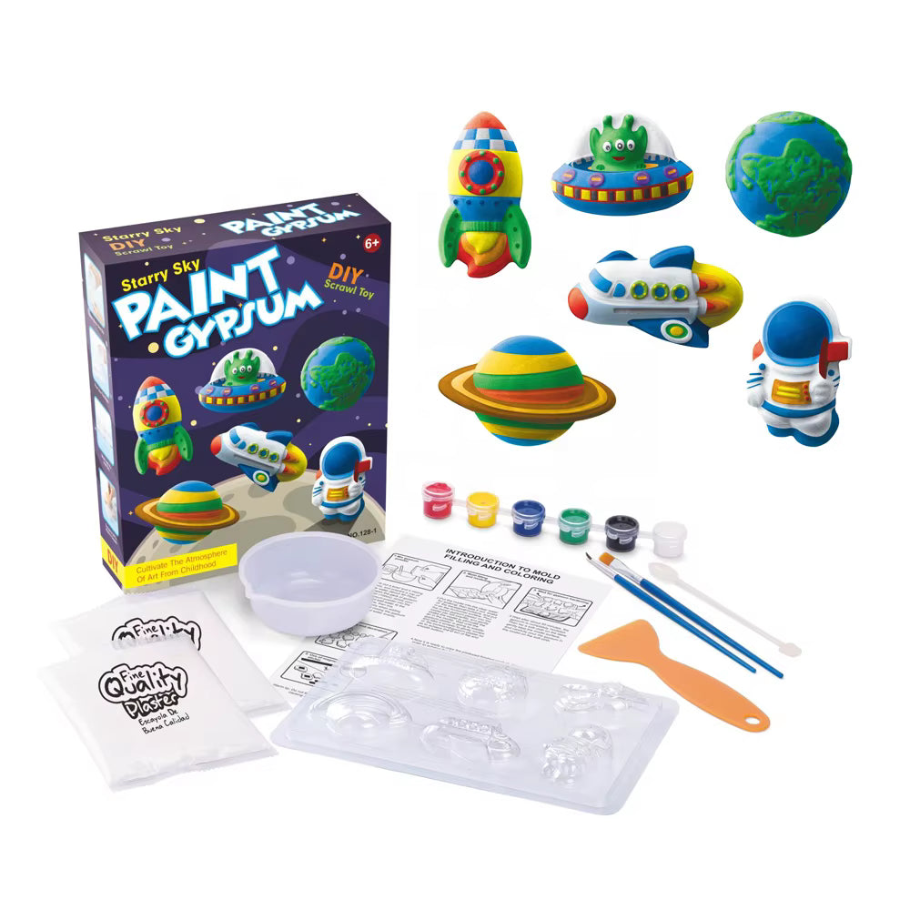🧑🚀 مجموعة أدوات علمية إبداعية متكاملة – تتضمن مسحوق الجبس، وقوالب بلاستيكية قابلة لإعادة الاستخدام، ووعاء خلط، وملعقة، ودهانات وفرش حتى يتمكن رواد الفضاء الصغار من البدء في الصنع على الفور.