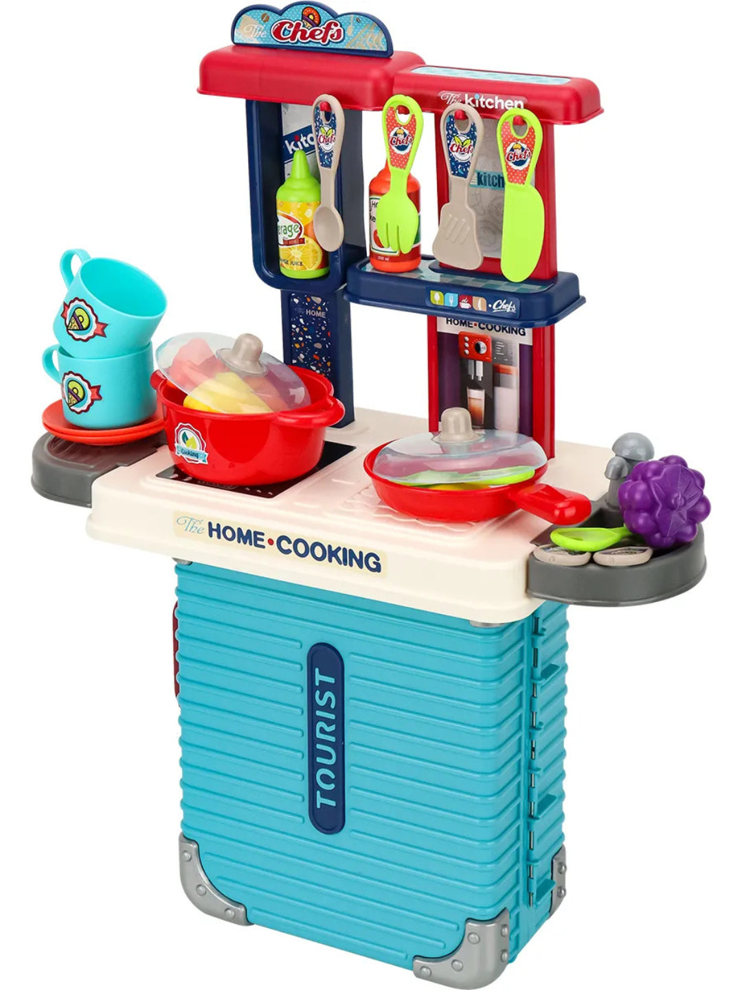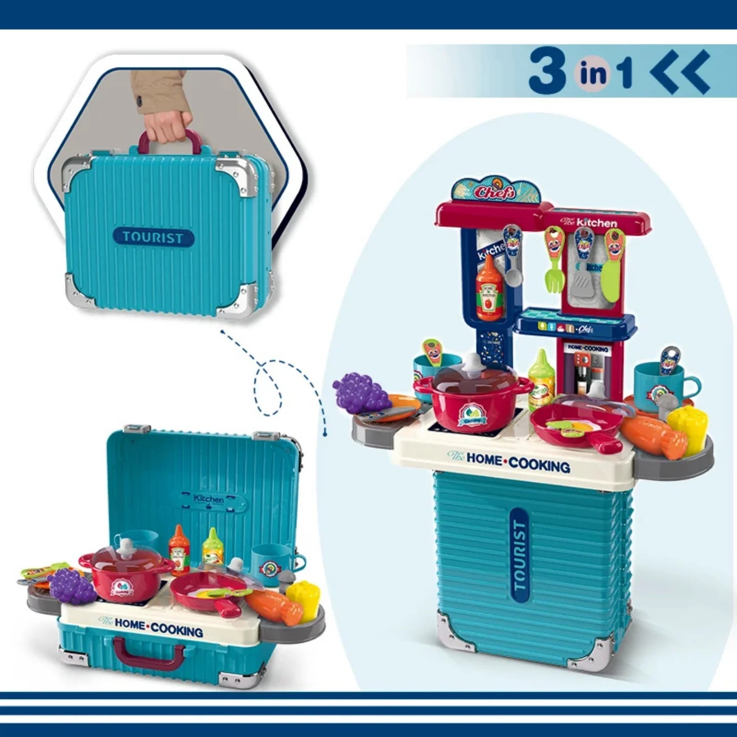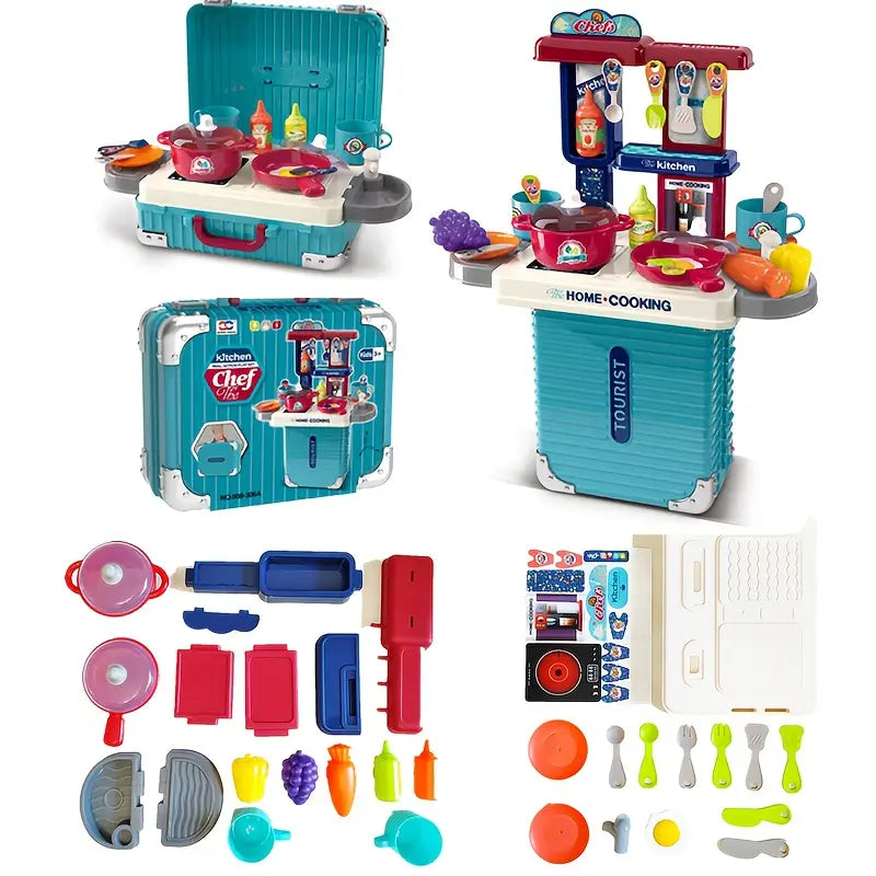 🍳 حقيبة سفر ملونة 3 في 1 "سياحية" تفتح لتصبح محطة مطبخ كاملة للطهي المنزلي، مثالية للطهاة الصغار أثناء التنقل.