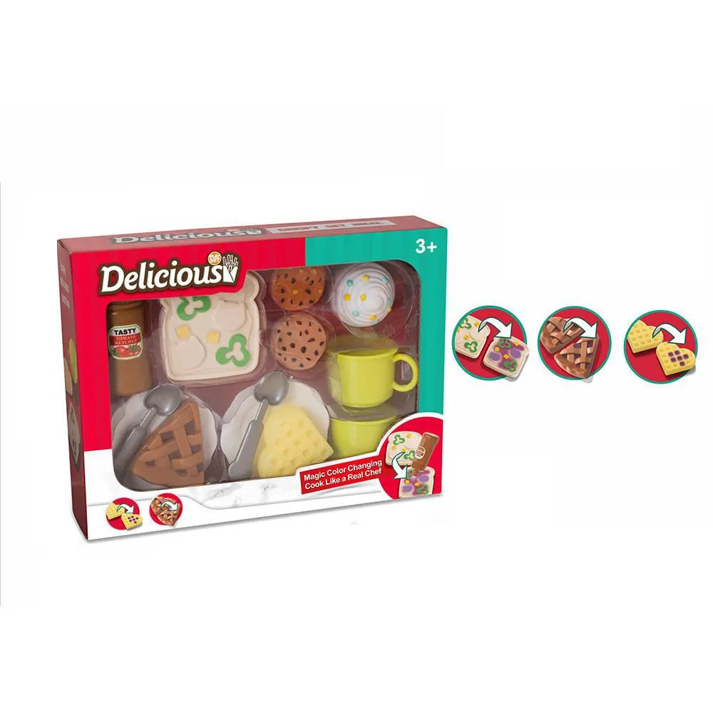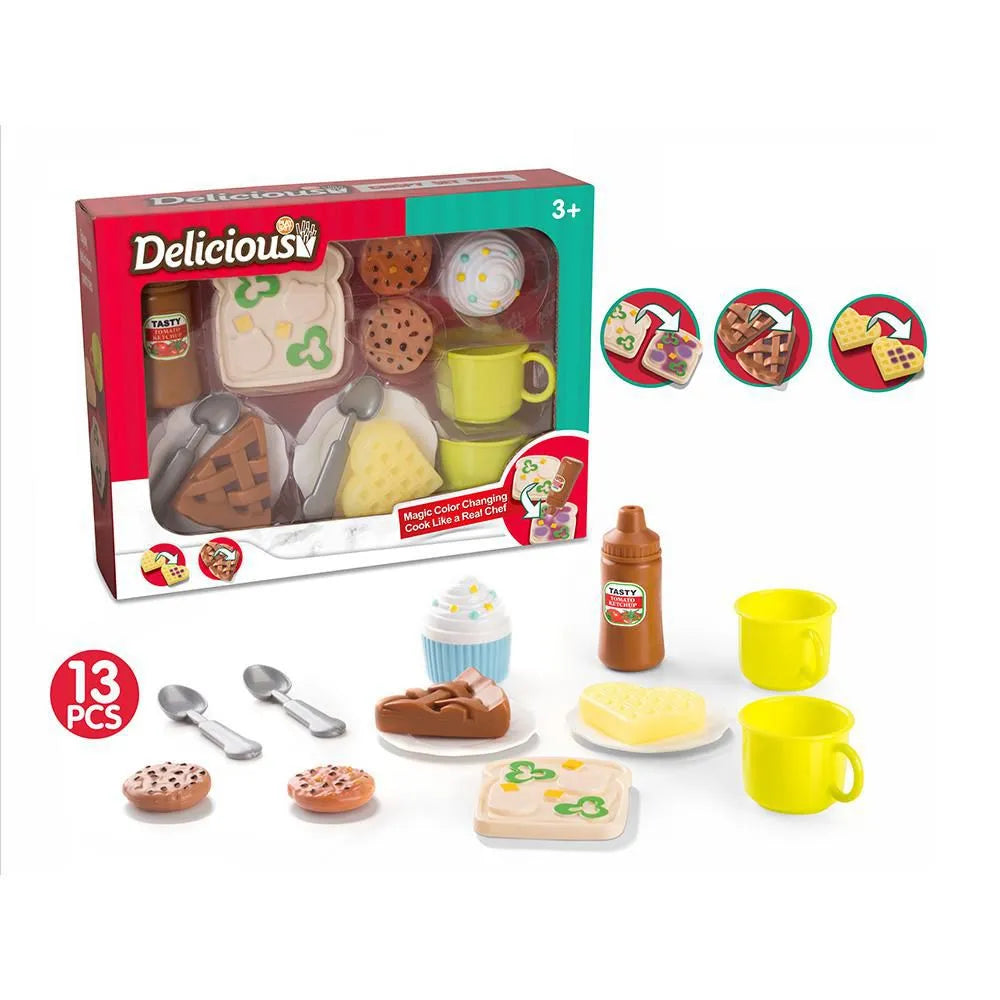 استعدوا لإضفاء لمسة سحرية! مجموعة تغيير الألوان السحرية اللذيذة ليست مجرد لعبة، بل هي عرض سحري لفنون الطهي في غرفة ألعابكم. شاهدوا بدهشة كيف تتغير ألوان أطباقكم، لتتحول كل وجبة خيالية إلى تحفة فنية من فئة الخمس نجوم!