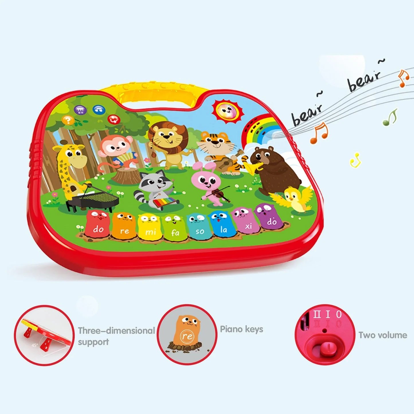 🎵 مفاتيح البيانو الملونة بألوان قوس قزح دو-ري-مي – مفاتيح السولفيج الساطعة (دو، ري، مي...) تعزف نغمات حقيقية وألحانًا ممتعة، مما يساعد الصغار على اكتشاف درجة الصوت والإيقاع والأغاني البسيطة.