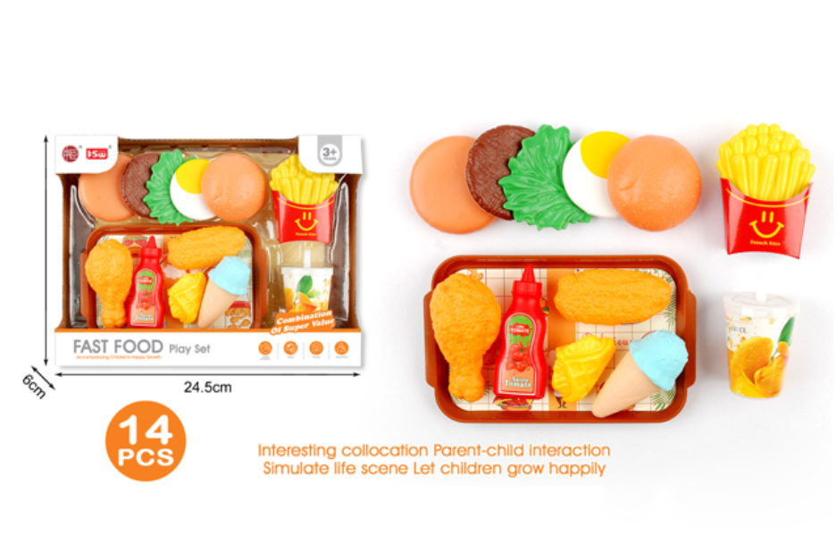 استعدّوا لافتتاح أروع مطعم في غرفة اللعب! تتيح لكم مجموعة ألعاب الوجبات السريعة هذه، المكونة من 14 قطعة، إعداد أشهى الأطباق، من البرغر اللذيذ إلى البطاطس المقلية المقرمشة والحلويات الشهية. إنها الوصفة المثالية لساعات من اللعب التخيلي الممتع!