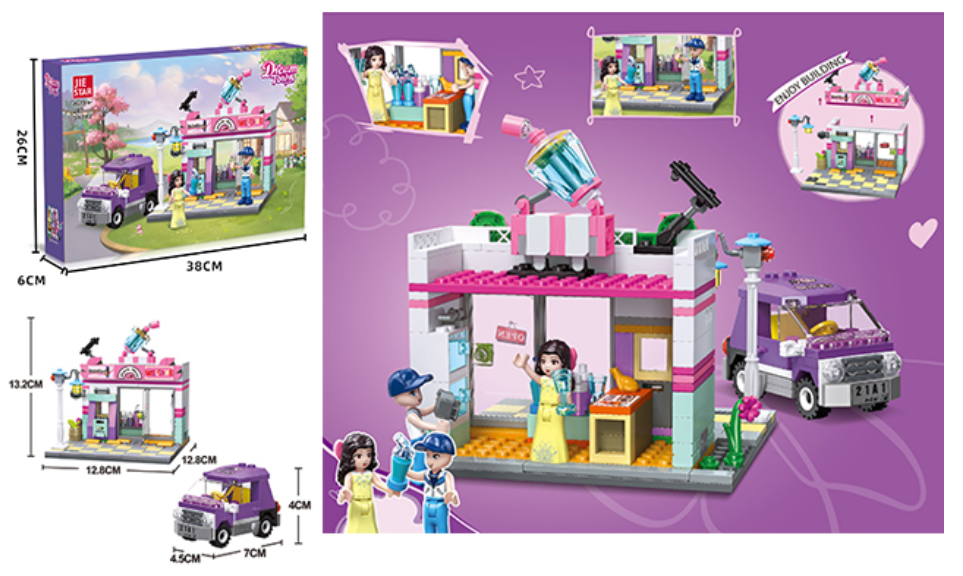 The Joylink Fresh Juice Shop Builder Set is a 287-piece LEGO-compatible kit that lets kids whip up cool pretend smoothies, design their own juice shop, and enjoy endless refreshing adventures with friends.
